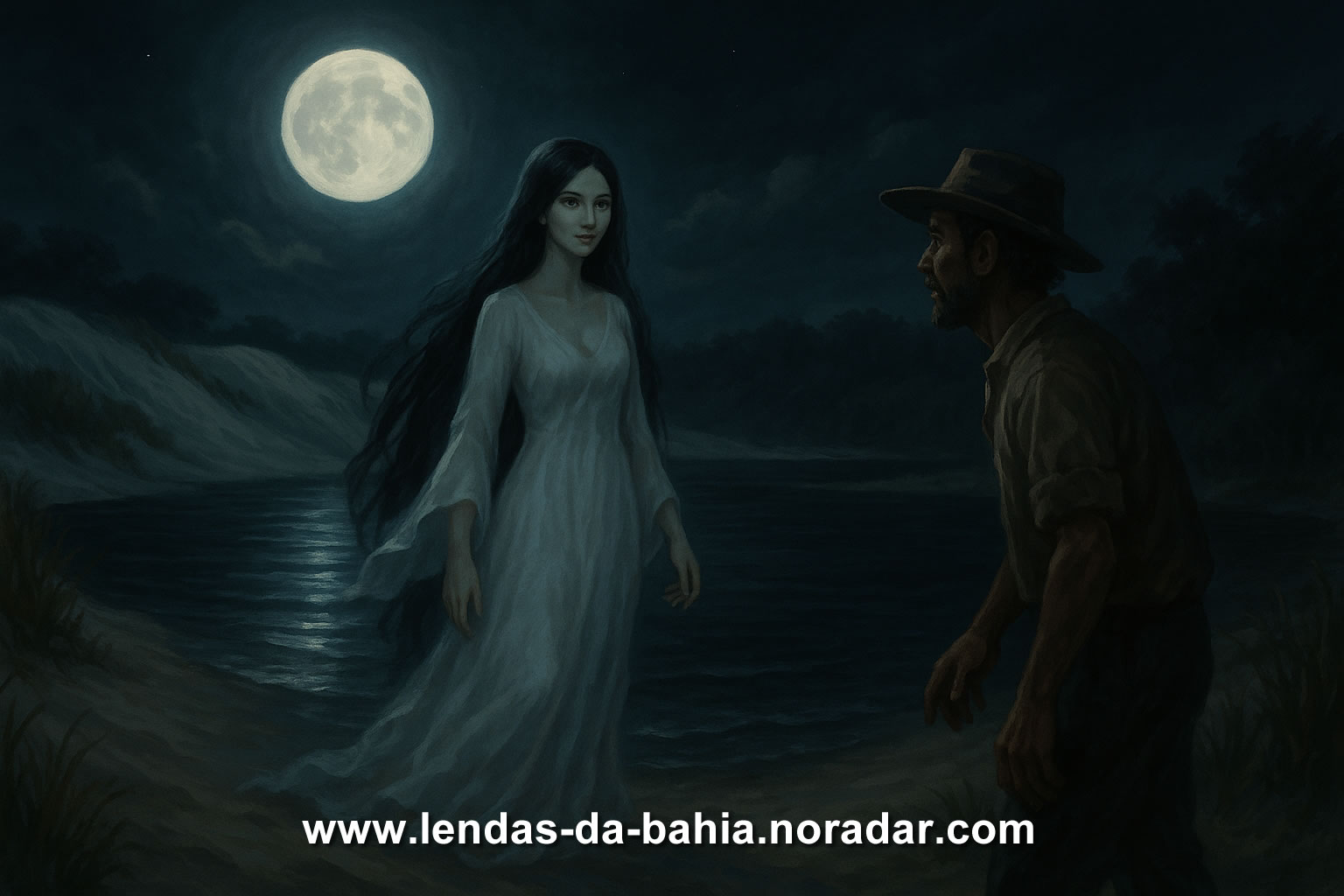 Dizem os antigos que, nas noites silenciosas e de luar prateado, uma mulher belíssima, de pele alva como a lua e cabelos longos e negros como a noite, surge das